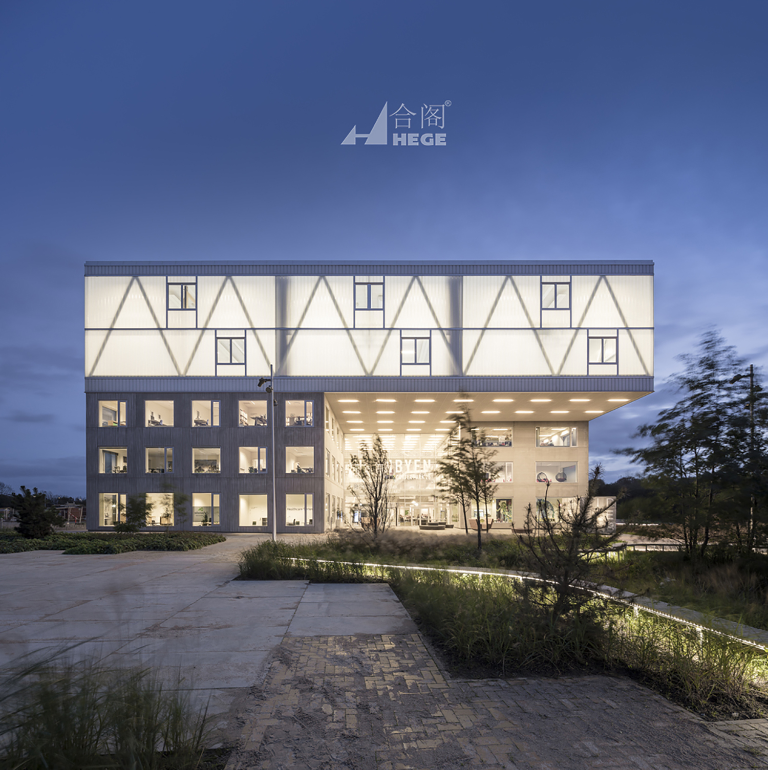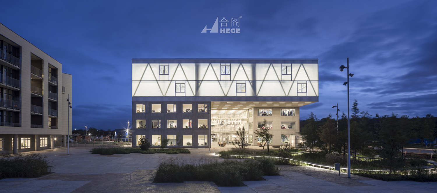 这是四个独立的体量但又在几个方面相互联系:城市的空间漂浮在入口处的建筑物上,交叉的楼梯连接三层高的中庭和顶层公共区域。顶层的体育设施在四座厚重的房屋上方盘旋,并赋予建筑以一种真正具有启发性的身份。当夜幕降临时,一个关于教育、研究和运动的活跃环境的故事拉开了序幕。