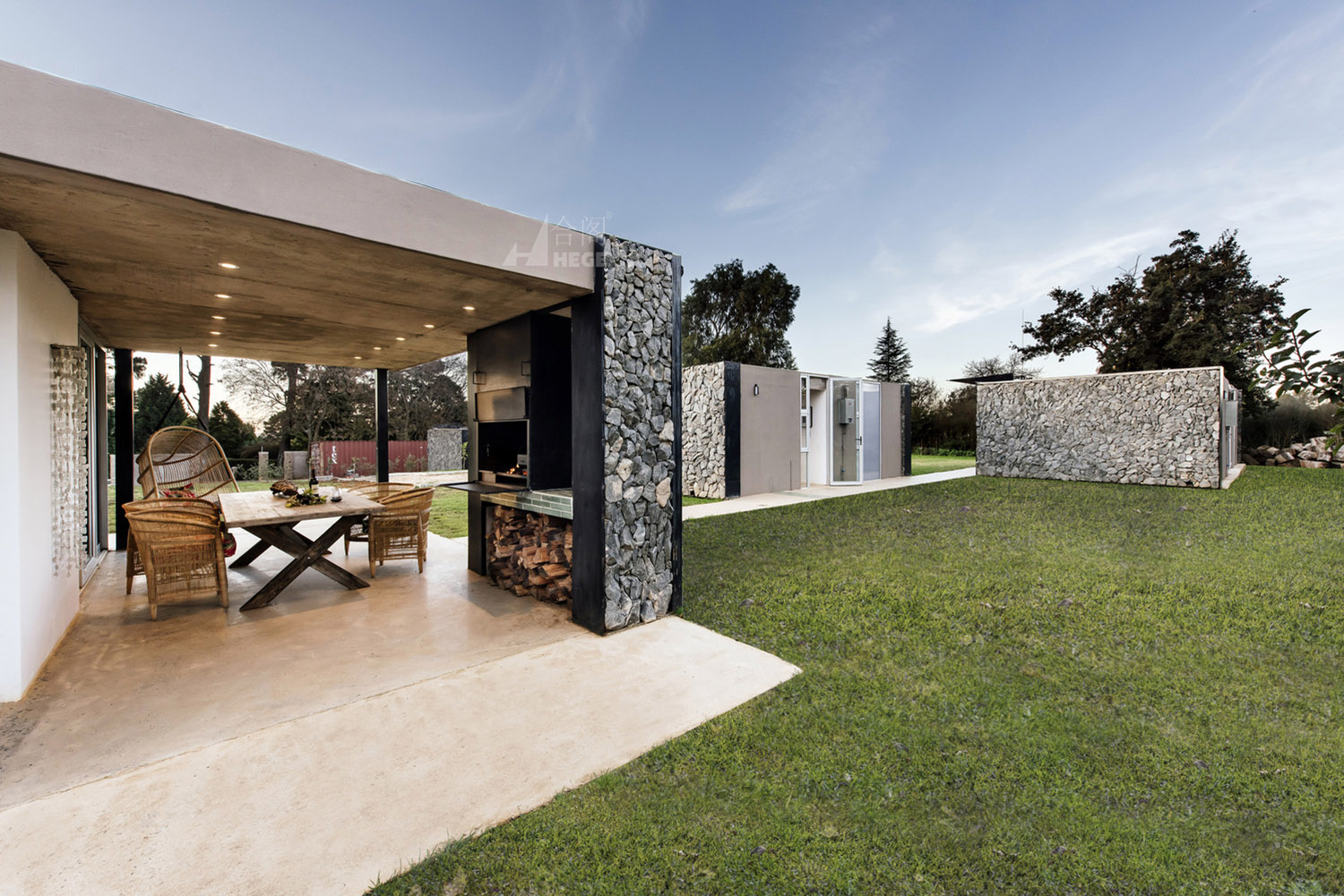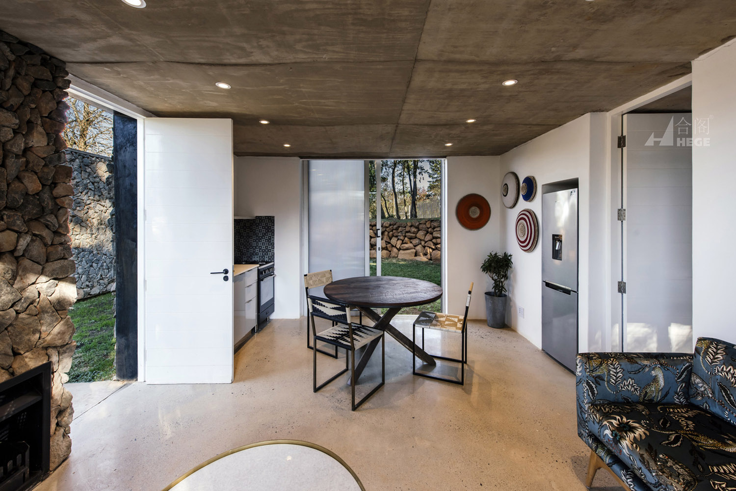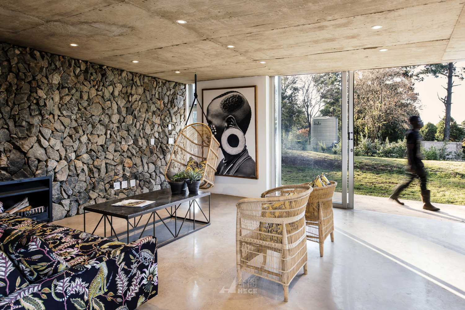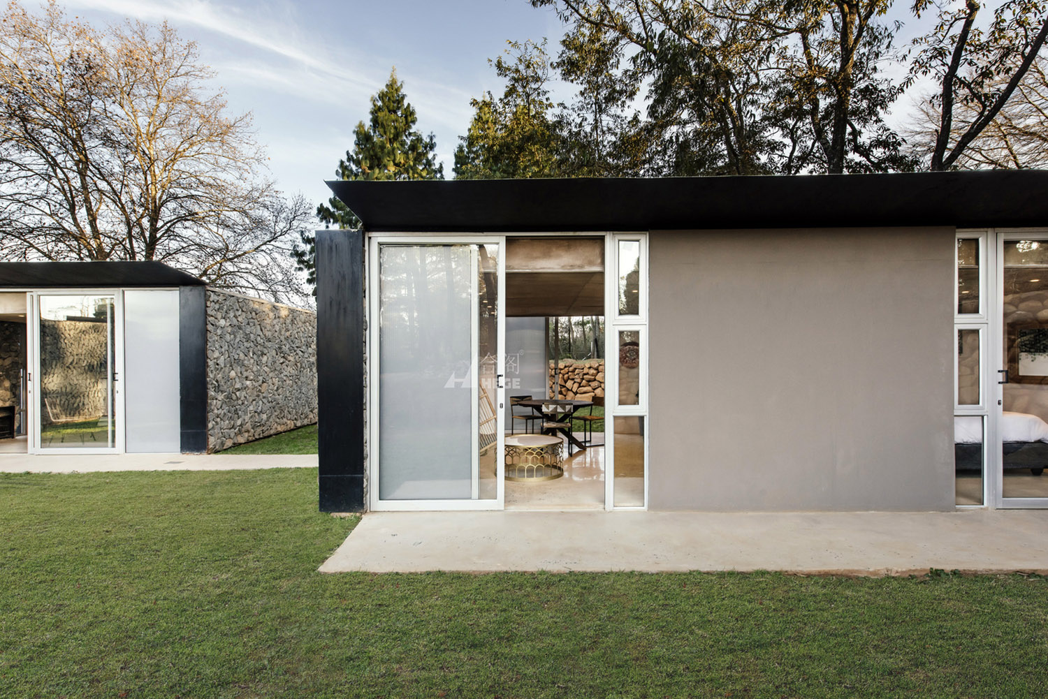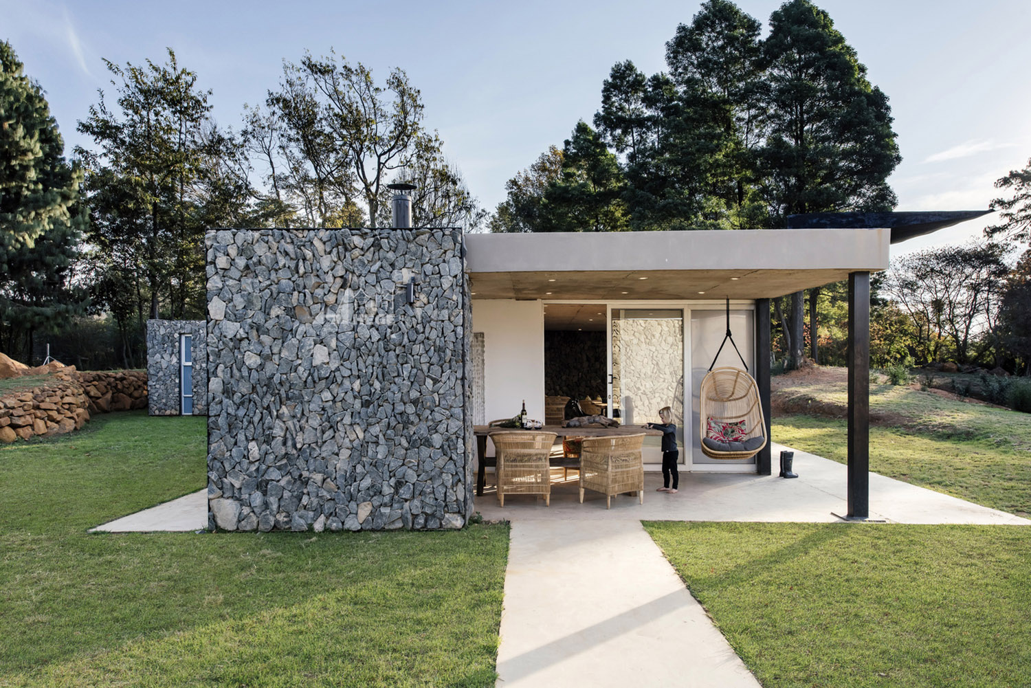 这是一个基于传统概念的分散式模块住宅。该项目中的住宅被分成一个个单独的小型空间,每个小型空间以独自运作,也可以作为一个整体运作以容纳一个大家庭的生活需求。因此,各种睡眠空间都布局于作为住宅核心的中央生活空间周围。材料和布局的简洁度、可持续性、低维护性和高性价比的施工构成了该项目的设计核心。主要材料包括采石场石材、裸露抛光混凝土地板和聚碳酸酯屏幕。材料以原始的形式使用,以真实地致敬非洲传统建筑设计概念。