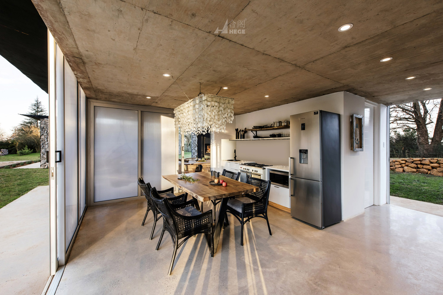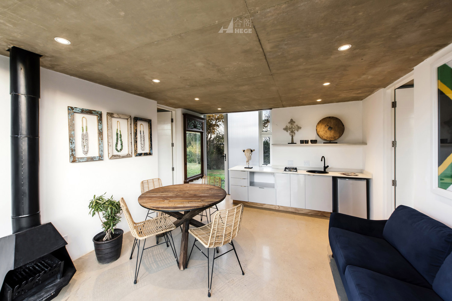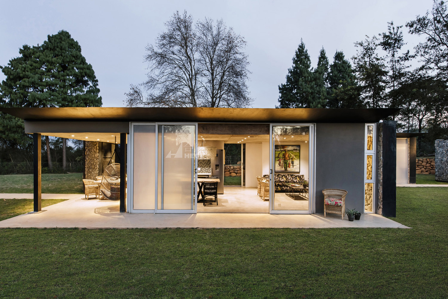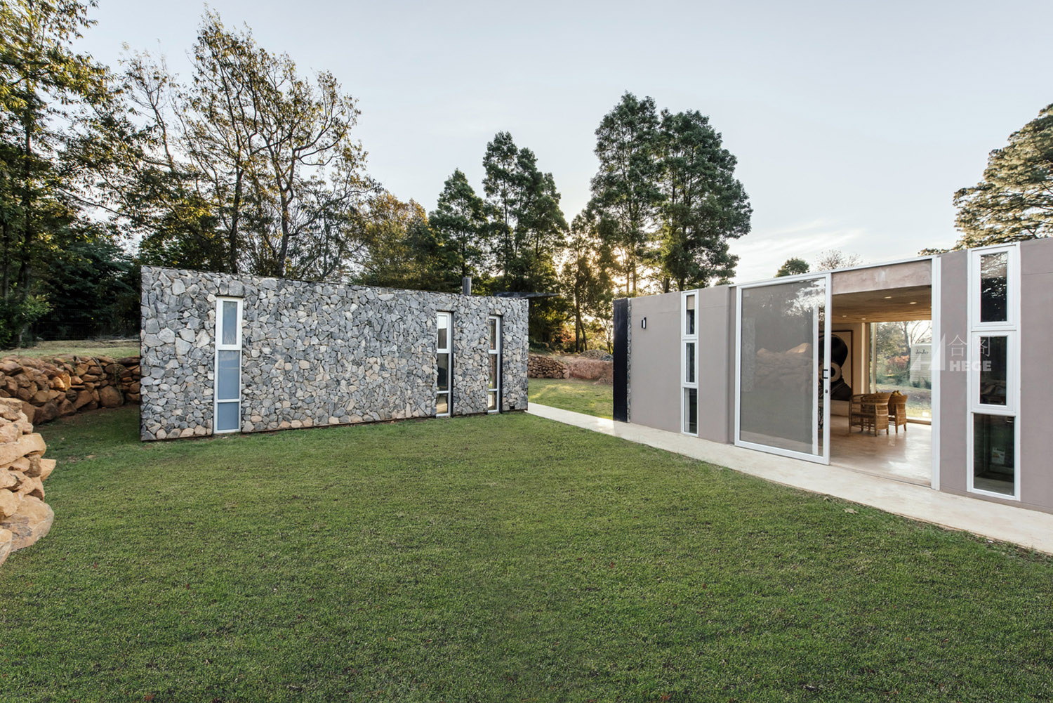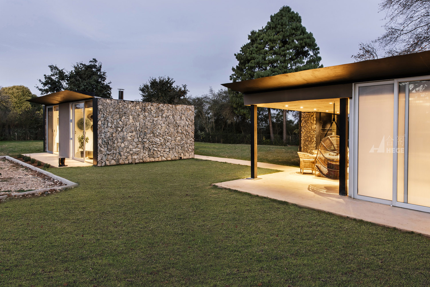 这是一个基于传统概念的分散式模块住宅。该项目中的住宅被分成一个个单独的小型空间,每个小型空间以独自运作,也可以作为一个整体运作以容纳一个大家庭的生活需求。因此,各种睡眠空间都布局于作为住宅核心的中央生活空间周围。材料和布局的简洁度、可持续性、低维护性和高性价比的施工构成了该项目的设计核心。主要材料包括采石场石材、裸露抛光混凝土地板和聚碳酸酯屏幕。材料以原始的形式使用,以真实地致敬非洲传统建筑设计概念。