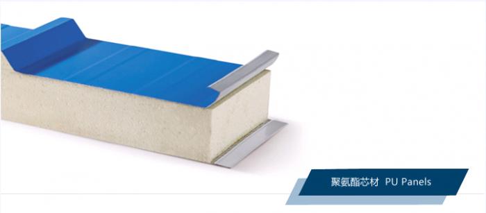 夹芯板产品是由两层成型金属面板(或其他材料面板)和直接在面板中间发泡、熟化成型的高分子隔热内芯组成。这些夹芯板成品便于安装、轻质、高效。填充系统使用的也是闭泡分子结构,可以杜绝水汽的凝结。[1]  外层钢板的成型充分考虑了结构和强度要求,并兼顾美观,内面层成型为平板以适应各种需要。