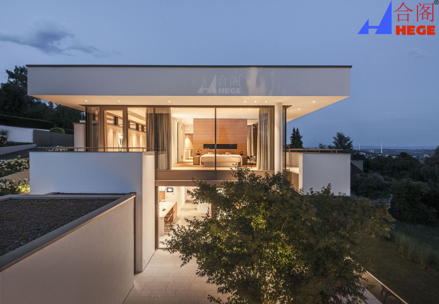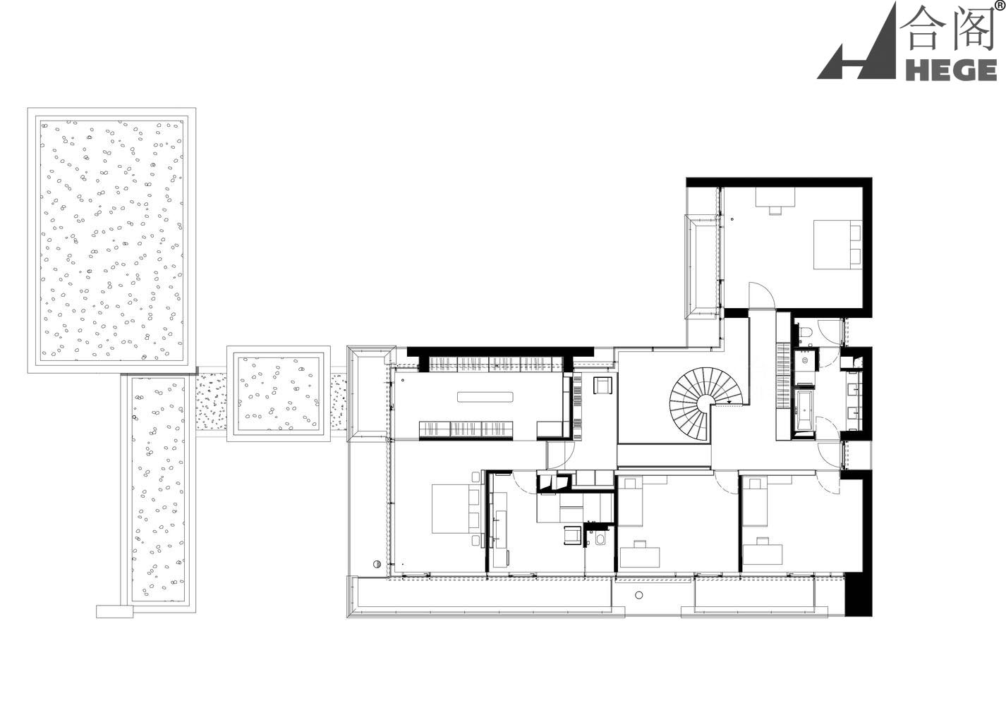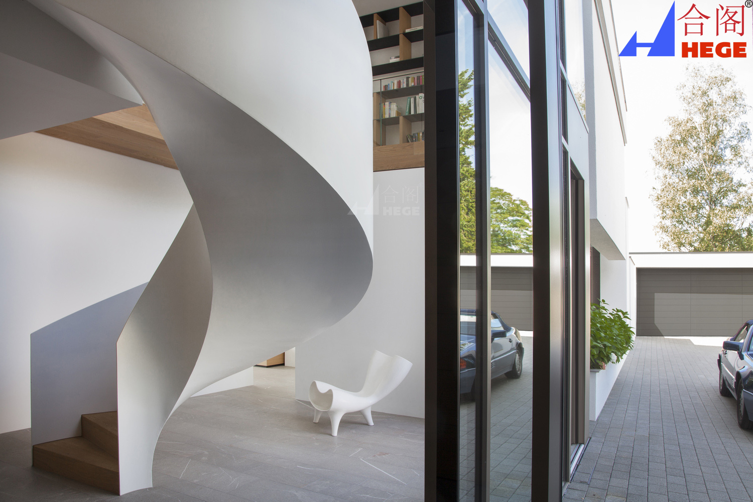 户外空间与室内空间相映成辉,整栋建筑处于一种温柔而干净的平衡状态,慢慢从开放的情绪过渡到私密的生活。落地玻璃赋予空间通透的气质,从建筑入口门厅过渡到一个充满雕塑感的旋转楼梯,并延续到睡房之间的连桥,最后走向一个明亮的全玻璃的转角,无论站在住宅何处都能到丰富的景观,通透的玻璃从视觉上将室内外融合一体。