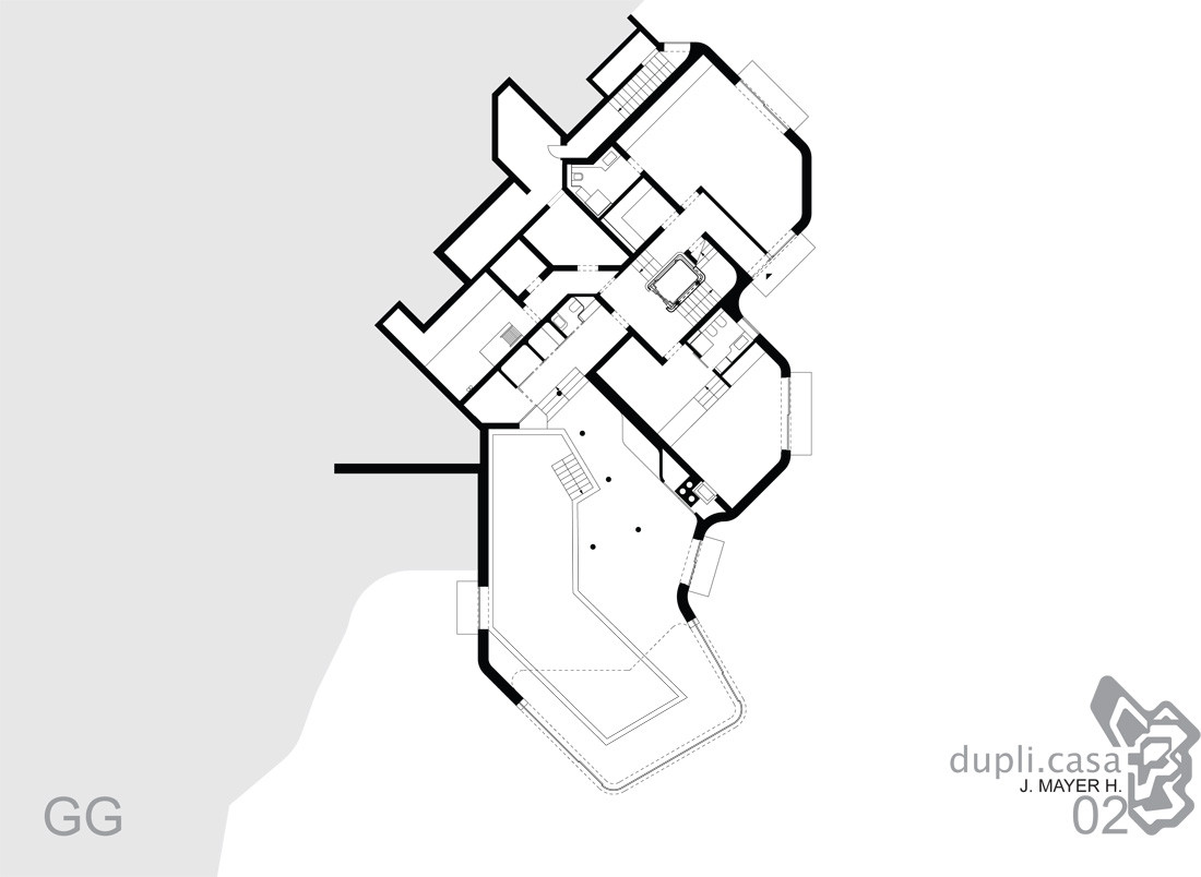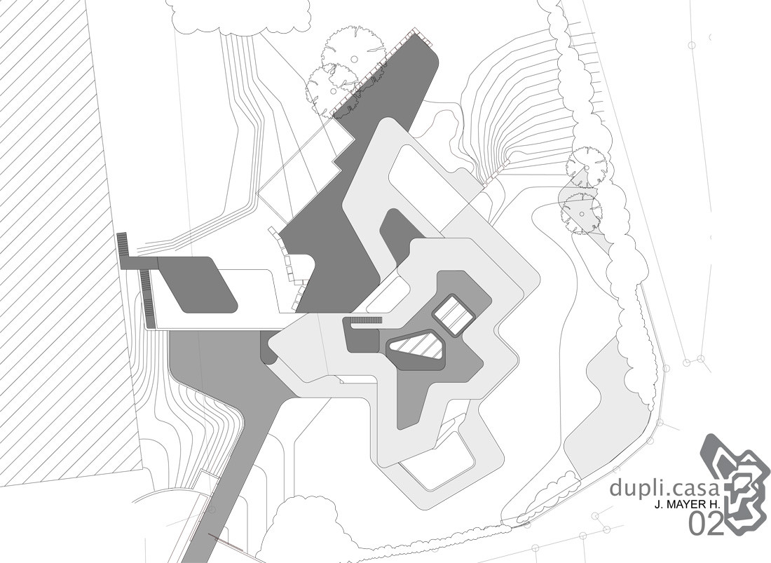 从城市尺度上看,这一建筑表现了与城市环路、机动车道相统一的图像学特征。而从一层平面上来看,与街道的关系决定于邻近的公园,建筑如同俯下身来,倾斜朝向街道空间。