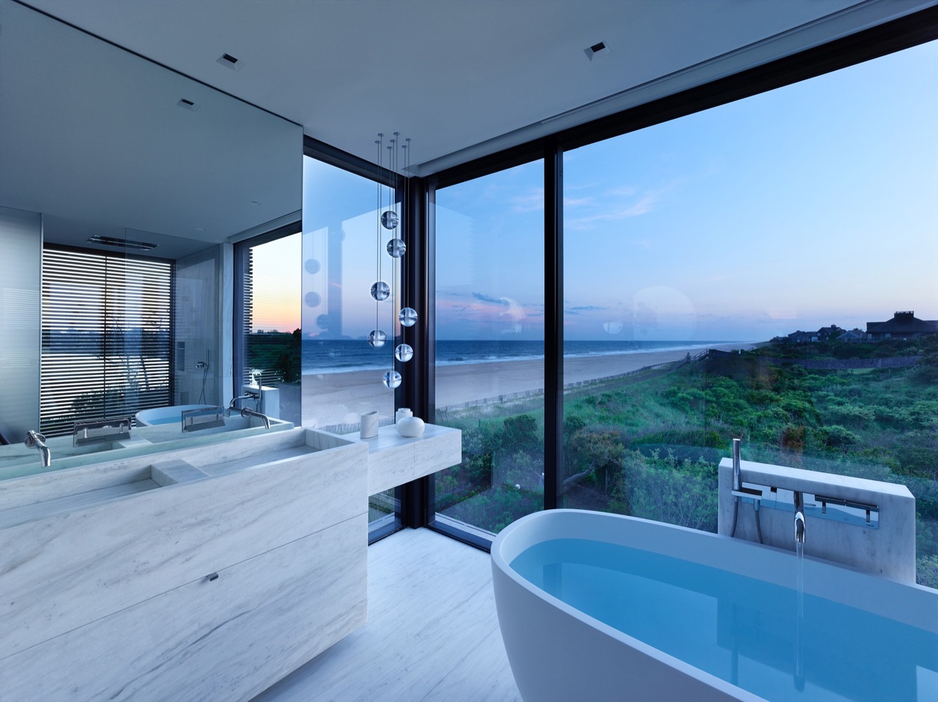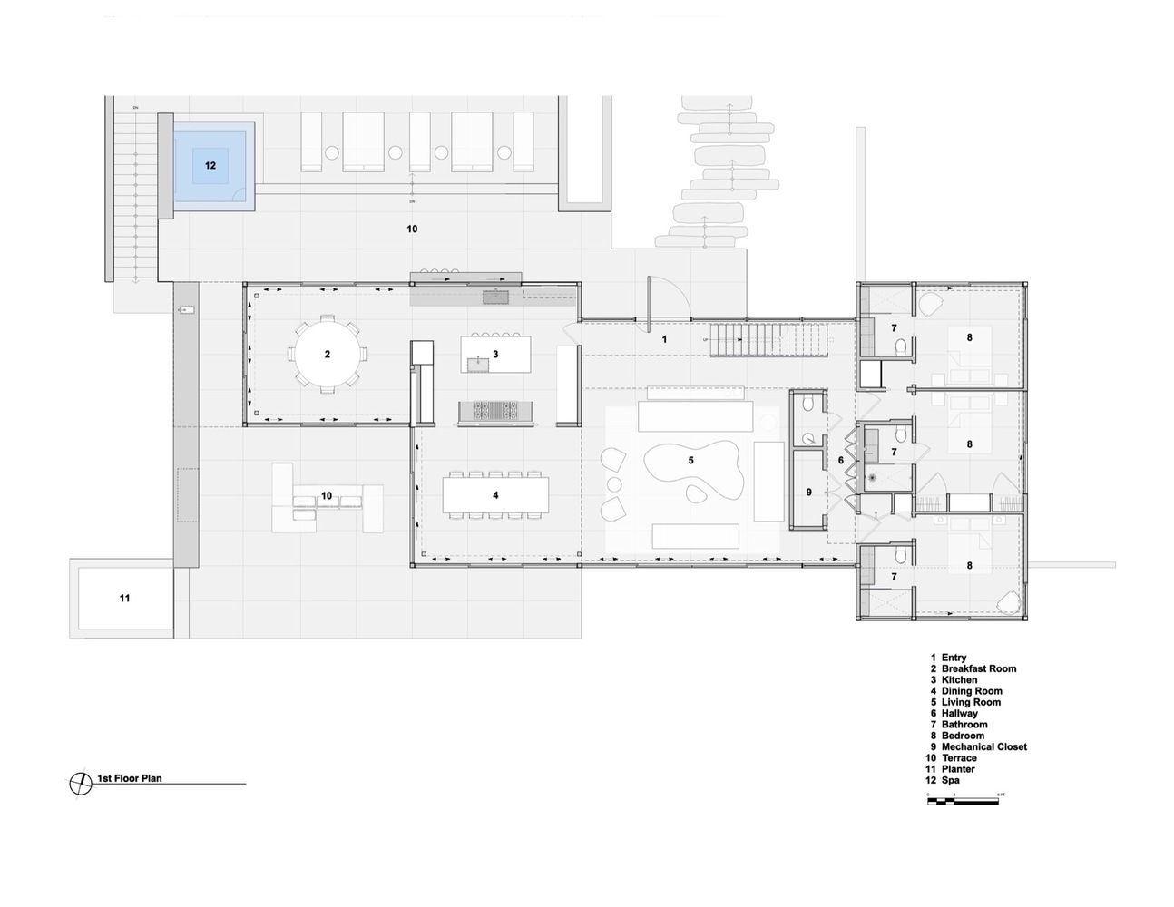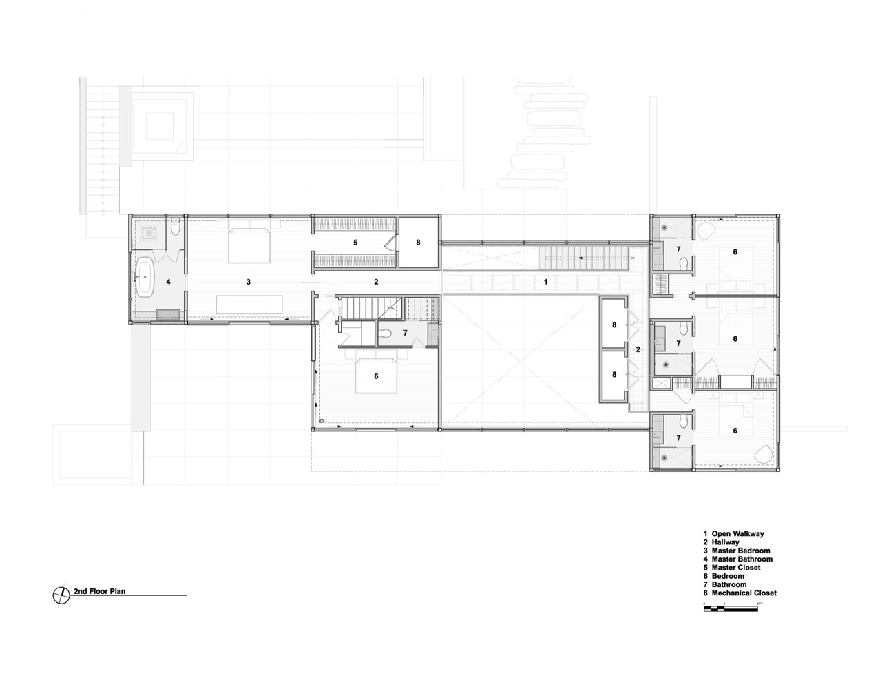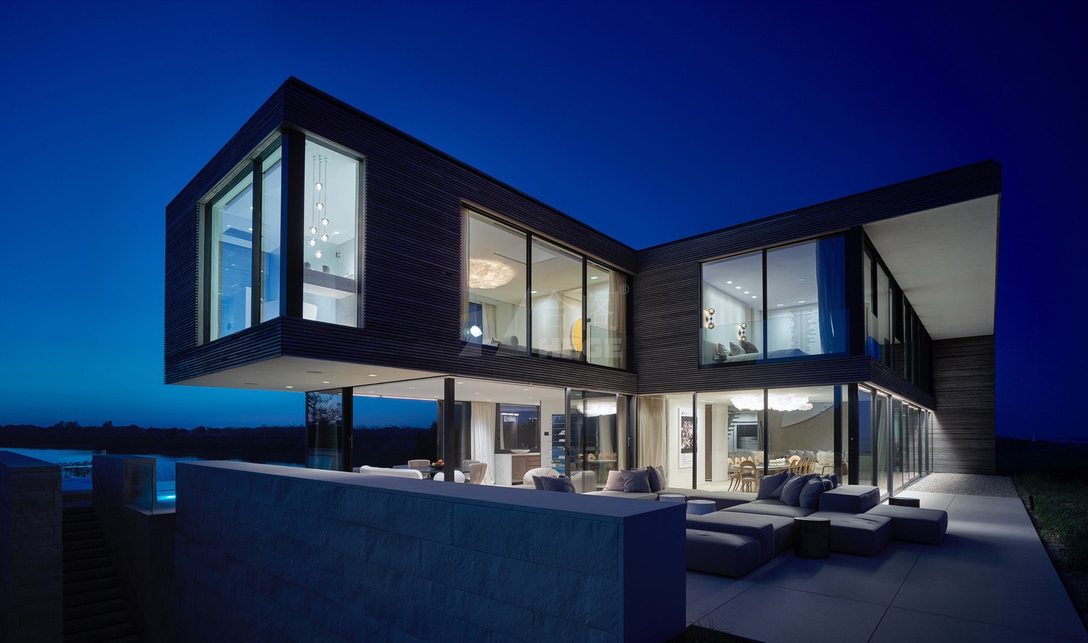 位于大海与池塘之间的景观居屋,似乎会被其周围的景观穿透。项目扮演的角色既是周围环境的延伸,又是一个庇护所,居住其中仿佛能感受到汹涌的水流与狂风的力量。房子建在桩上,采用钢框架结构。这所房子东翼的两层,是客人和家庭的卧室。每个房间都不大,从地板到玻璃天花板注重着与外部的联系,适当的遮挡使房间尽可能隔热。第二层楼板桥把孩子们的卧室和主人套房以及一个带有玻璃角落的起居室连接起来。
