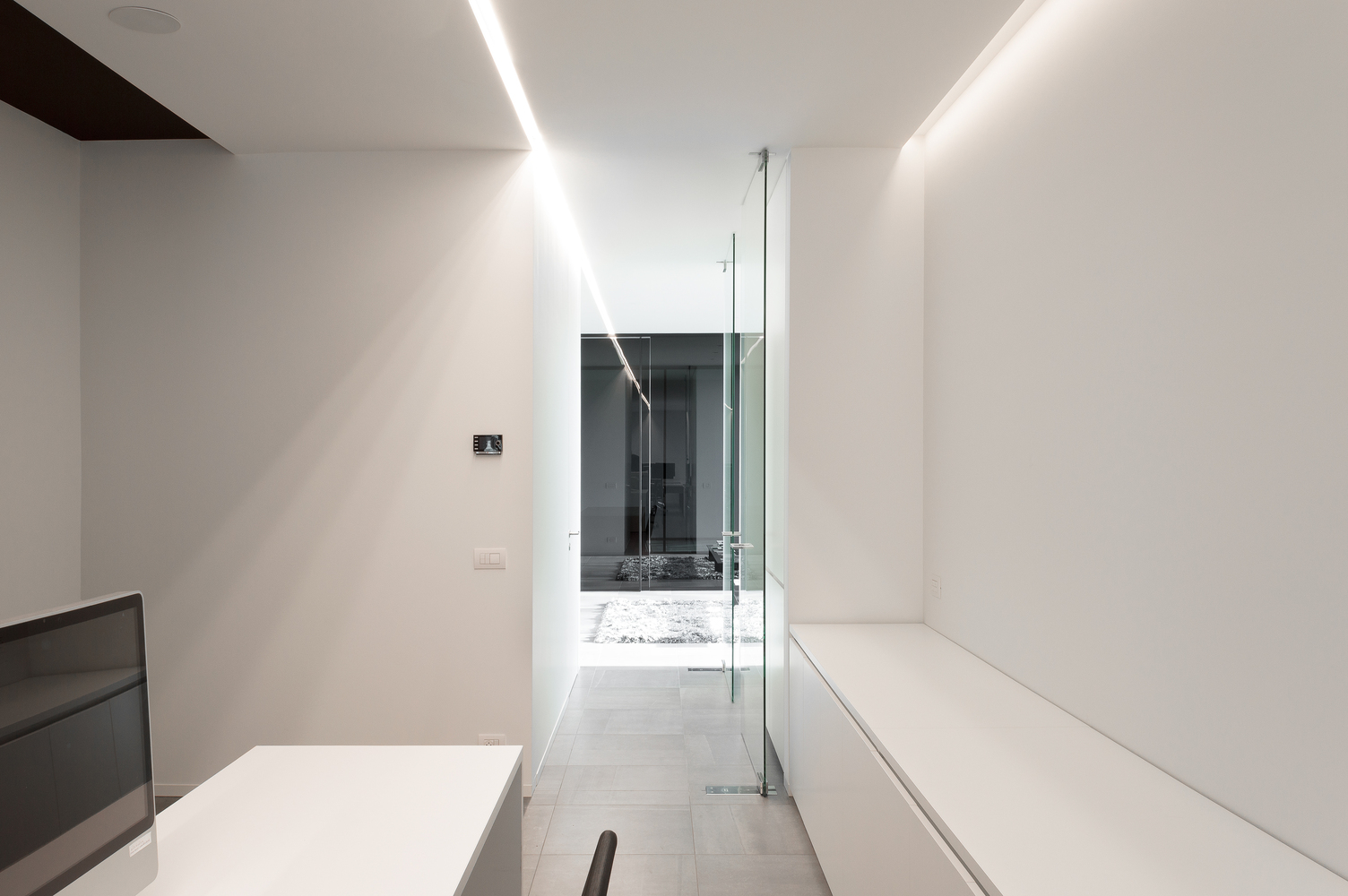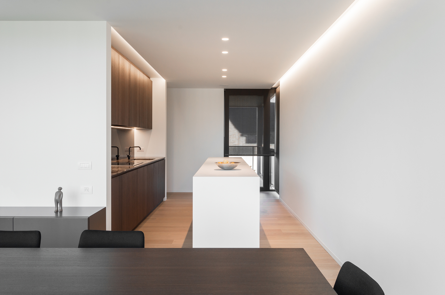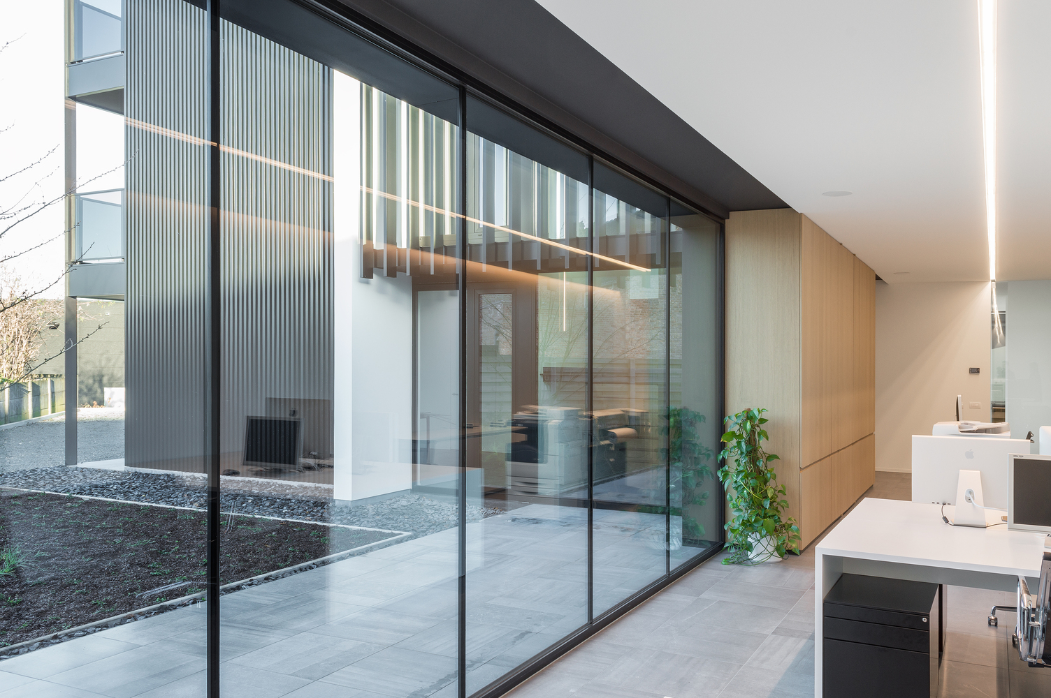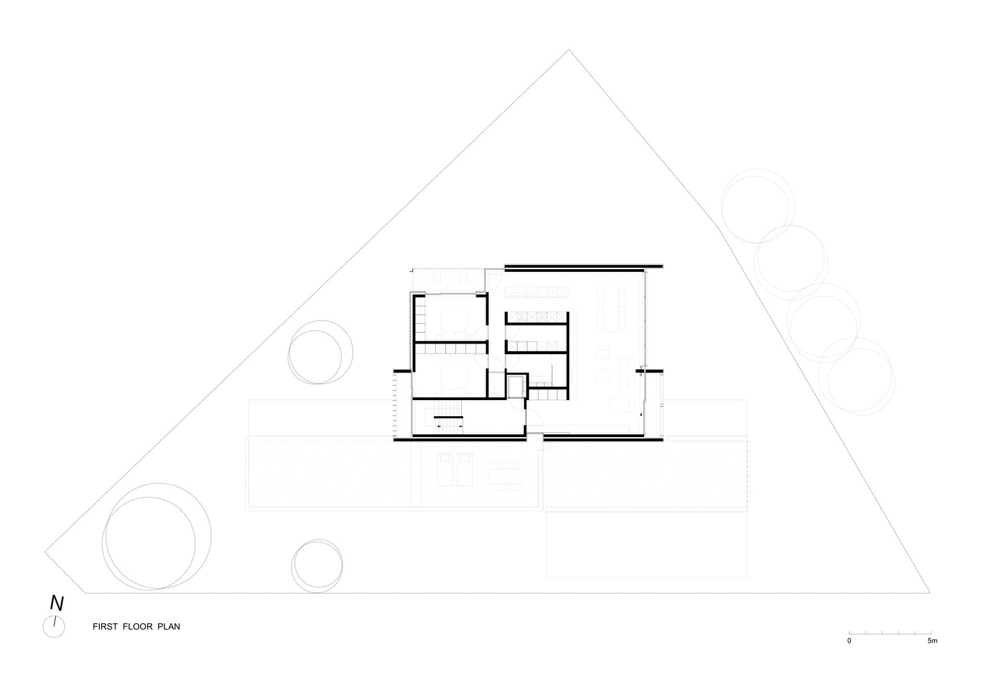 为了与十字路口和门口的高大橡树建立联系,建筑设计采用了动态的白色垂直表面,由玻璃和对比鲜明的金属分离开来。由于项目倾斜的外形,从十字路口对面看过来,建筑如同环绕着橡树,这个设计加强了建筑的动态效果。刻意添加的垂直表面令三角地块剩余的空间成为了建筑内部的延伸区域,在功能上作为露台或是开放的公共区域。